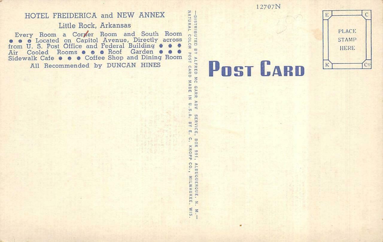 LITTLE ROCK, Arkansas AR HOTEL FREIDERICA & New Annex ROOM~Dining Postcard