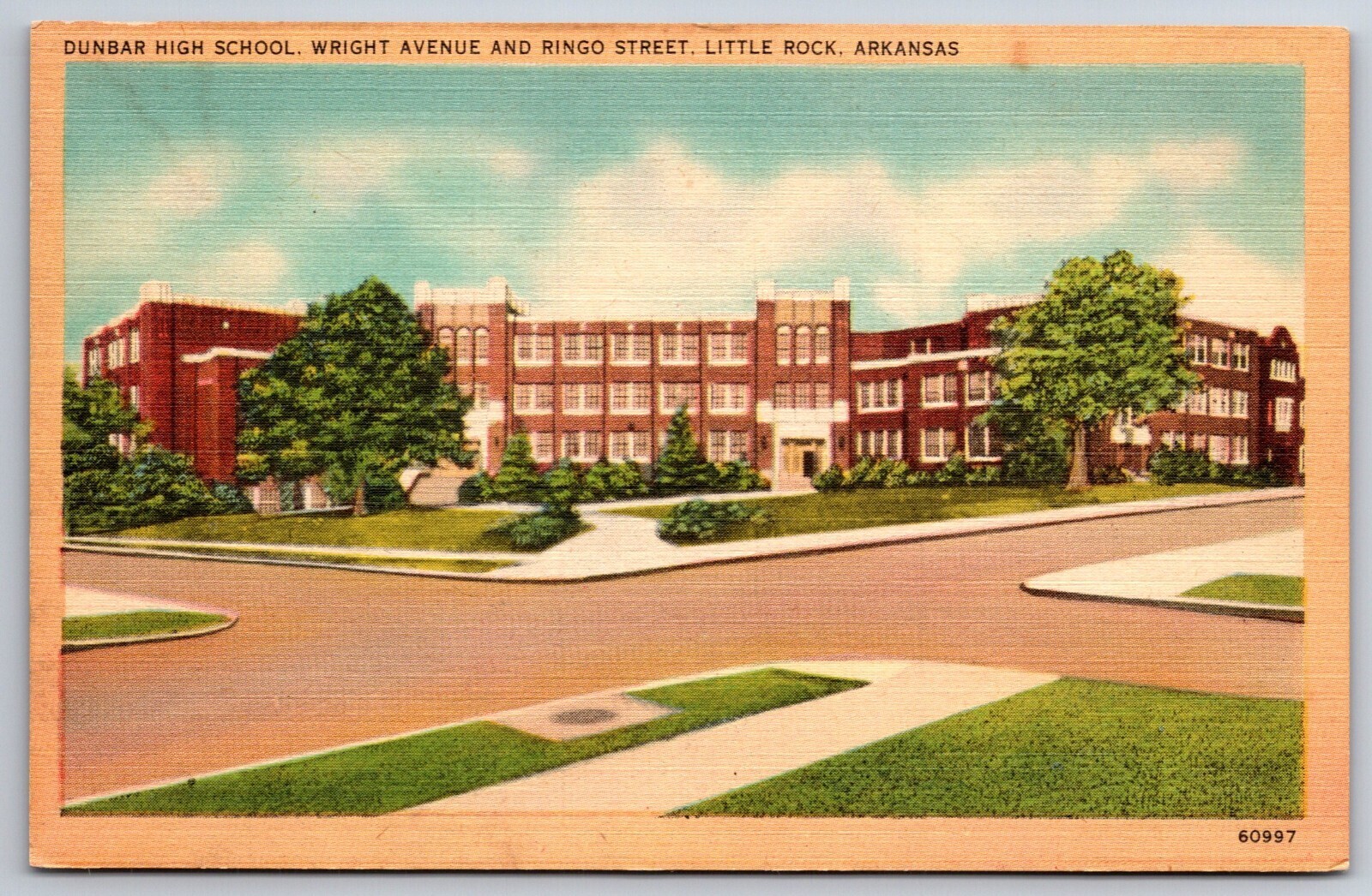 Little Rock Arkansas~Dunbar High School @ Wright Ave & Ringo St~Linen Postcard