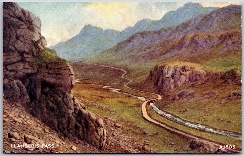 Llanberis Pass Wales Mountain Trail Roadway Bridge Old Postcard
