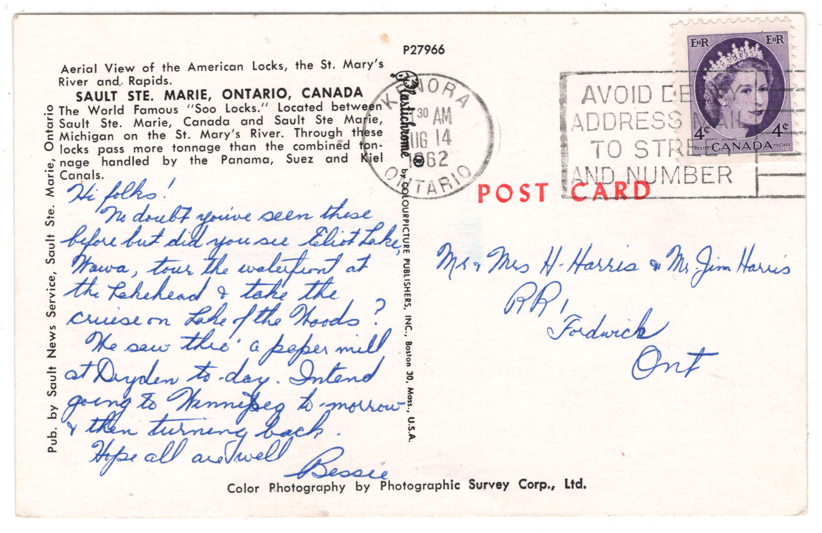 Postcards are shown from Actual Scan - Postmarked August 14, 1962 in Very Good Condition.