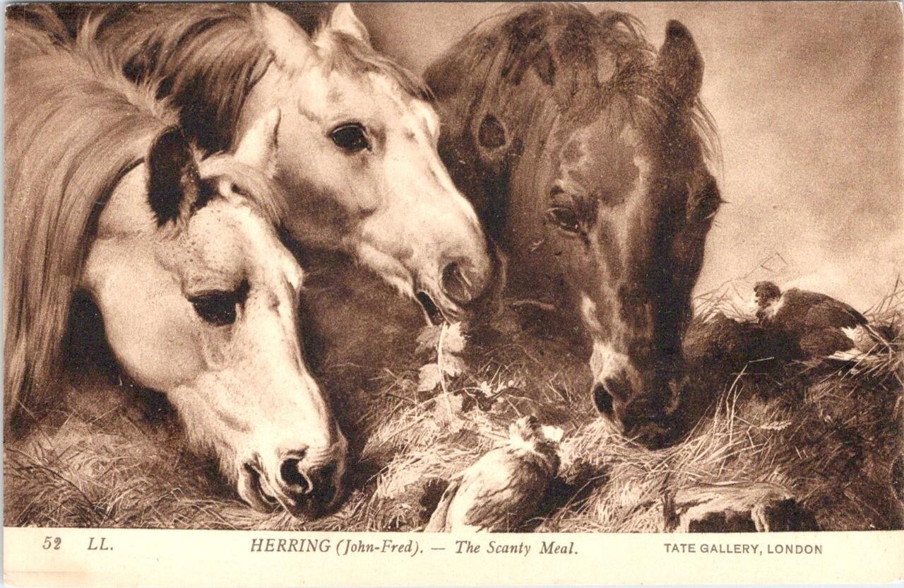 London, England THE SCANTY MEAL Horses~Art By JOHN FREDERICK HERRING Postcard
