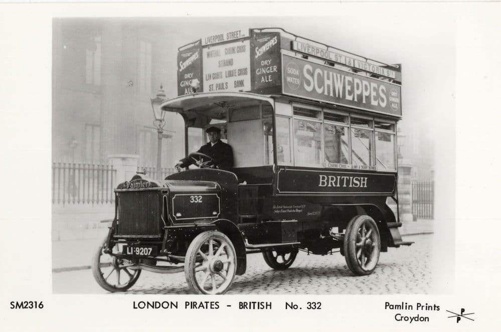 London Pirates Driver Schweppes Advertising Bus Tram RPC Postcard