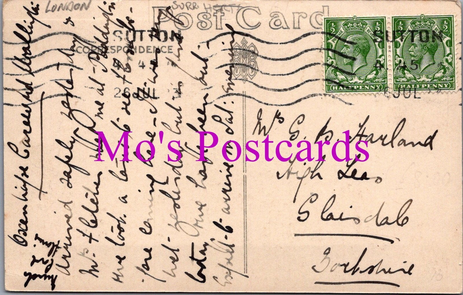 This is a London Postcard - Carew Road, Wallington, Sutton SW15305 Publisher: M.StammersPostcard size: Standard. Posted in 1913 Postcard defect(s): Slight crease to the bottom right hand cornerPlease also use the image magnifier to make your own assessment on the condition. Please ignore any lines caused by the scanner. When possible all of our postcards will be posted to you inside a collectable plastic postcard sleeve and a board backed envelope which will be marked 'Please do not bend'.The 'Mo's Postcards' watermark does not appear on the actual postcard'. Mo's Ref: London Postcard - Carew Road, Wallington, Sutton SW15305
