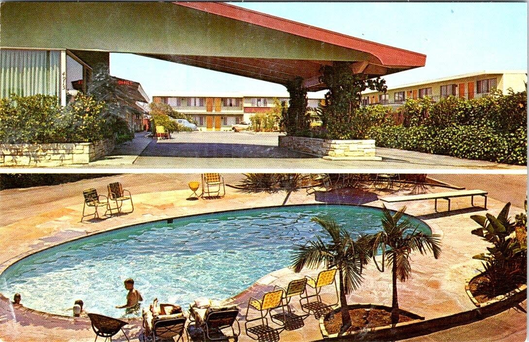 Long Beach, CA California DON'S MOTEL & POOL VIEW Roadside~PCH ca1950's Postcard