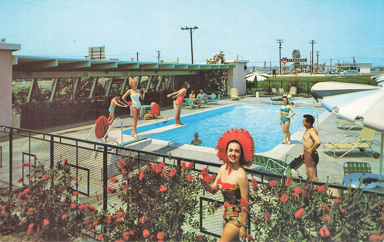 Long Beach CA Landmark Motel Swimming Pool Postcard