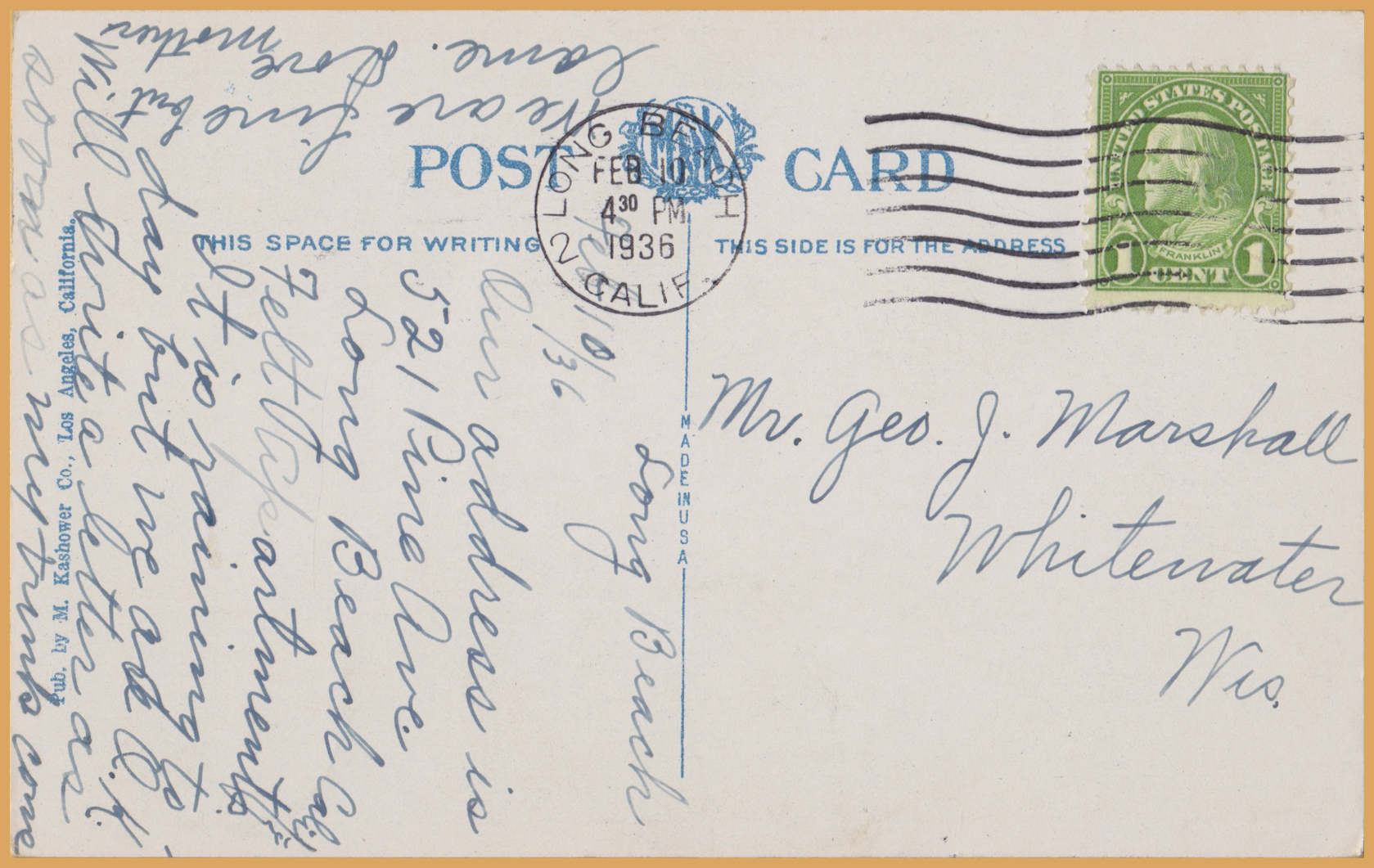 Please check out the awesome photographs for actual condition of this card. If you have any questions about this or any of my cards please feel free to contact me. *** Very good condition - Postmarked Long Beach, Calif., Feb 10, 1936