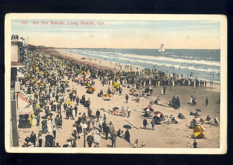 Long Beach, California/CA Postcard, Bathing & Sunning Along The Beach