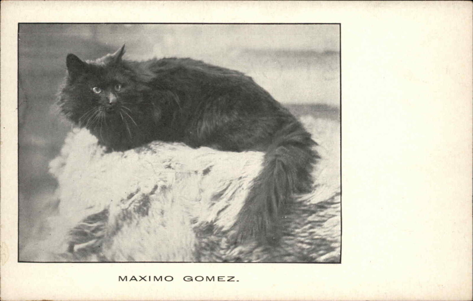 Long-Haired Black Cat MAXIMO GOMEZ c1905 Postcard
