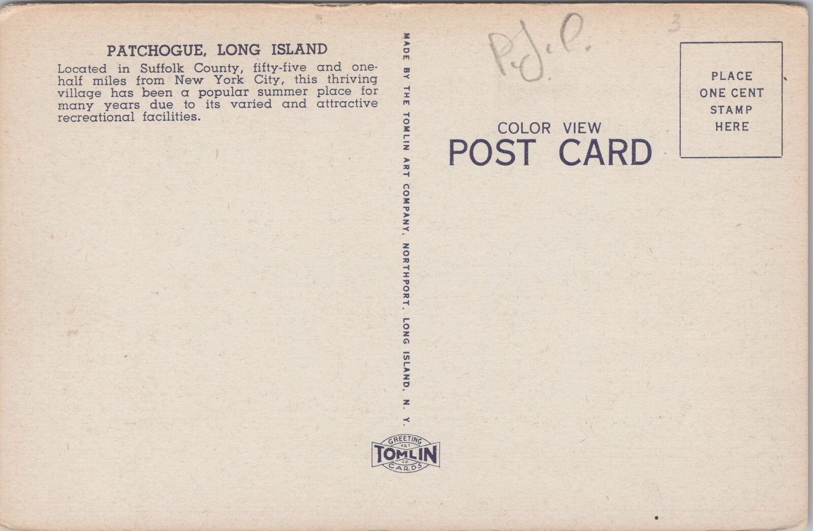 Long Island NY~Patchoque High School~Red Border~Lamppost~Tomlin Vintage Postcard