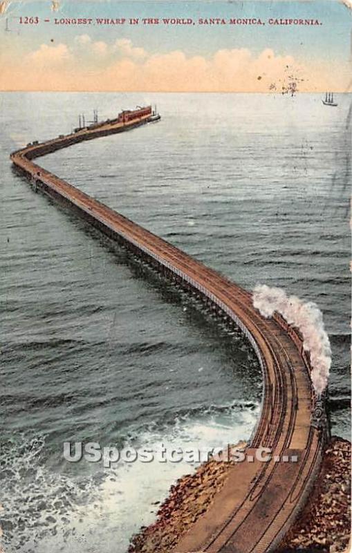 Longest Wharf Santa Monica CA Year Date of Postcard, or Postal Used / Year Used: 1911 Grade: 3 Product Size: R Product Type: 4 Grading Scale: Grade 1 = Perfect corners Grade 2 = Very Minimal corner wear, no ... Read More