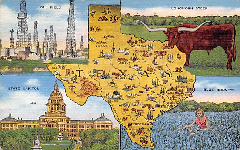Longhorn Steer State Capitol - Map, Texas TX Postcard