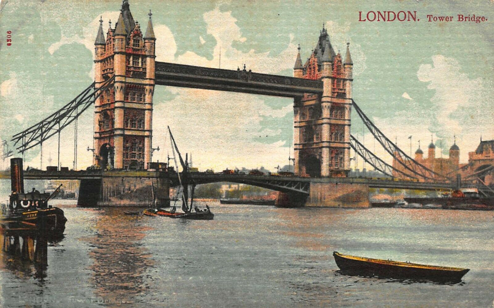 LONGON ENGLAND~TOWER BRIDGE~TINTED PHOTO POSTCARD
