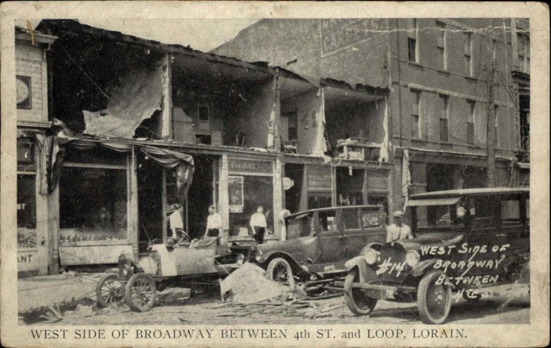 Lorain Ohio OH Tornado Damage 1924 Disaster West Side Broadway Postcard
