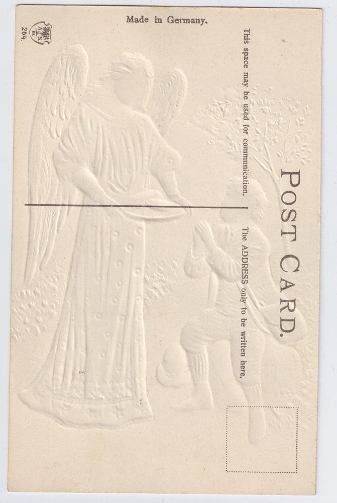 Lords Prayer Angel Boy Embossed Postcard ASB Germany Gold