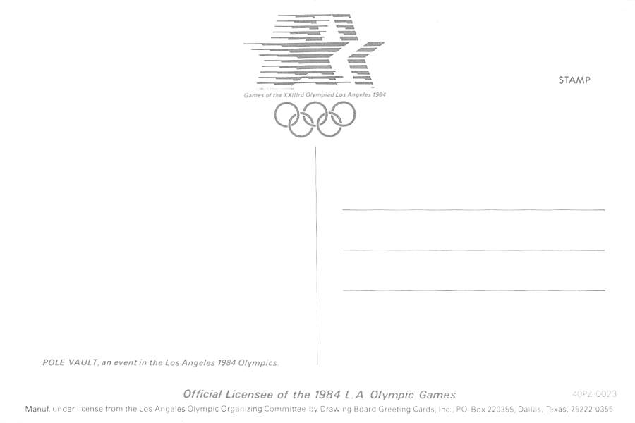 Los Angeles 1984 Olympics - Grade: 1 Category: Continental Size Postcard, Approx 4 in x 6 in (10 cm x 15.25 cm) Product Size: Continental size: 4X6 inches (10.5 cm x 15 cm) Grading Scale: Grade 1 = Perfect cor ... Read More
