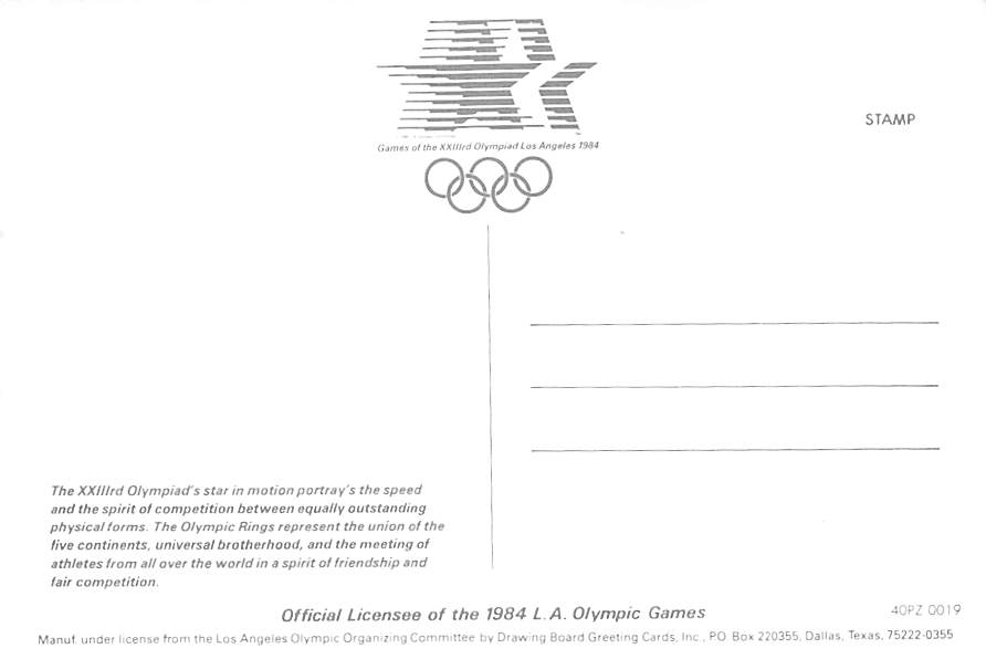Los Angeles 1984 Olympics - California Continental Size Postcard, Approx 4 in x 6 in (10 cm x 15.25 cm) Continental Size: 4X6 inches (10.5 cm x 15 cm)