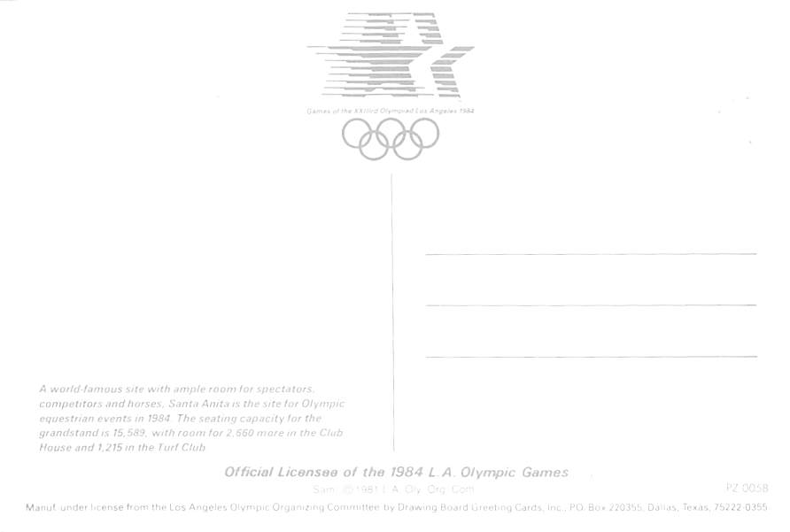 Los Angeles 1984 Olympics - California Grade: 1 Category: Continental Size Postcard, Approx 4 in x 6 in (10 cm x 15.25 cm) Product Size: Continental size: 4X6 inches (10.5 cm x 15 cm) Grading Scale: Grade 1 = ... Read More