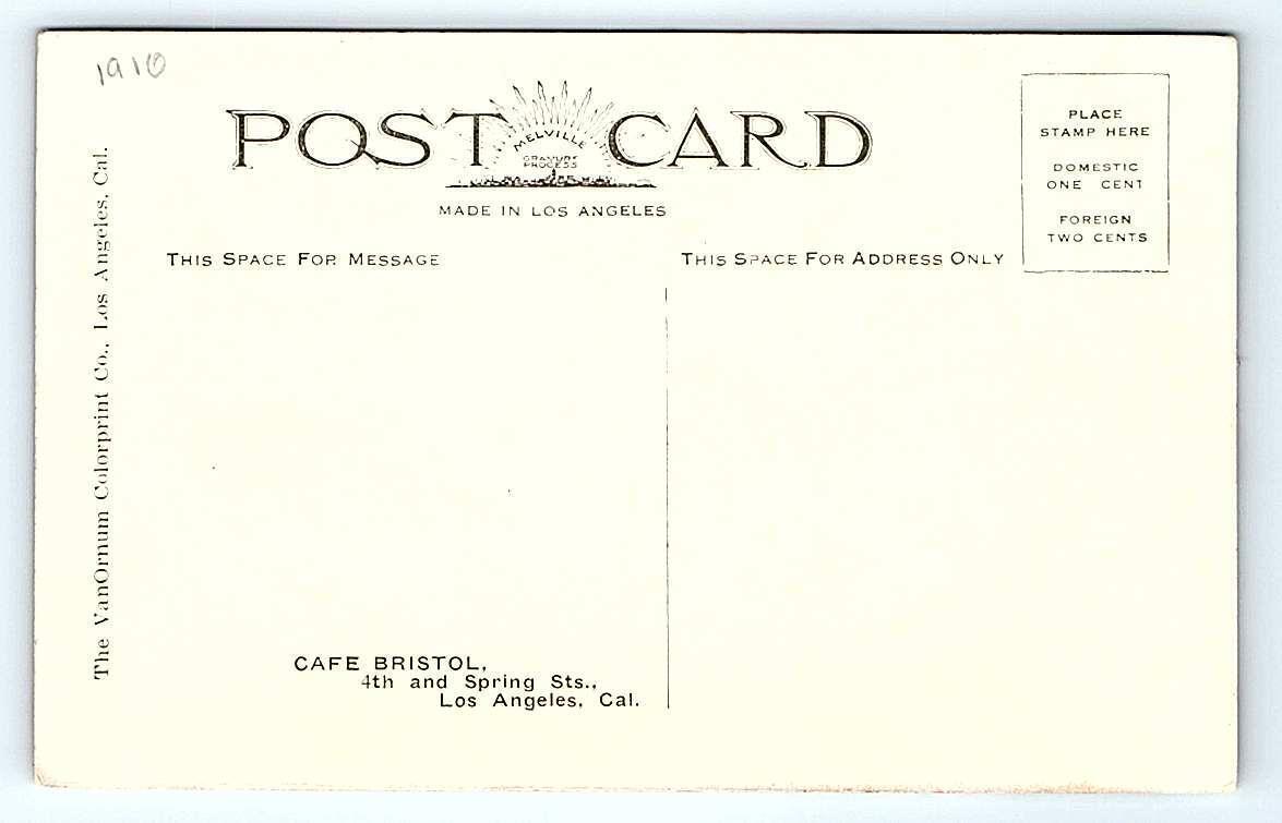 LOS ANGELES, CA California ~ CAFE BRISTOL Interior c1910s Roadside Postcard