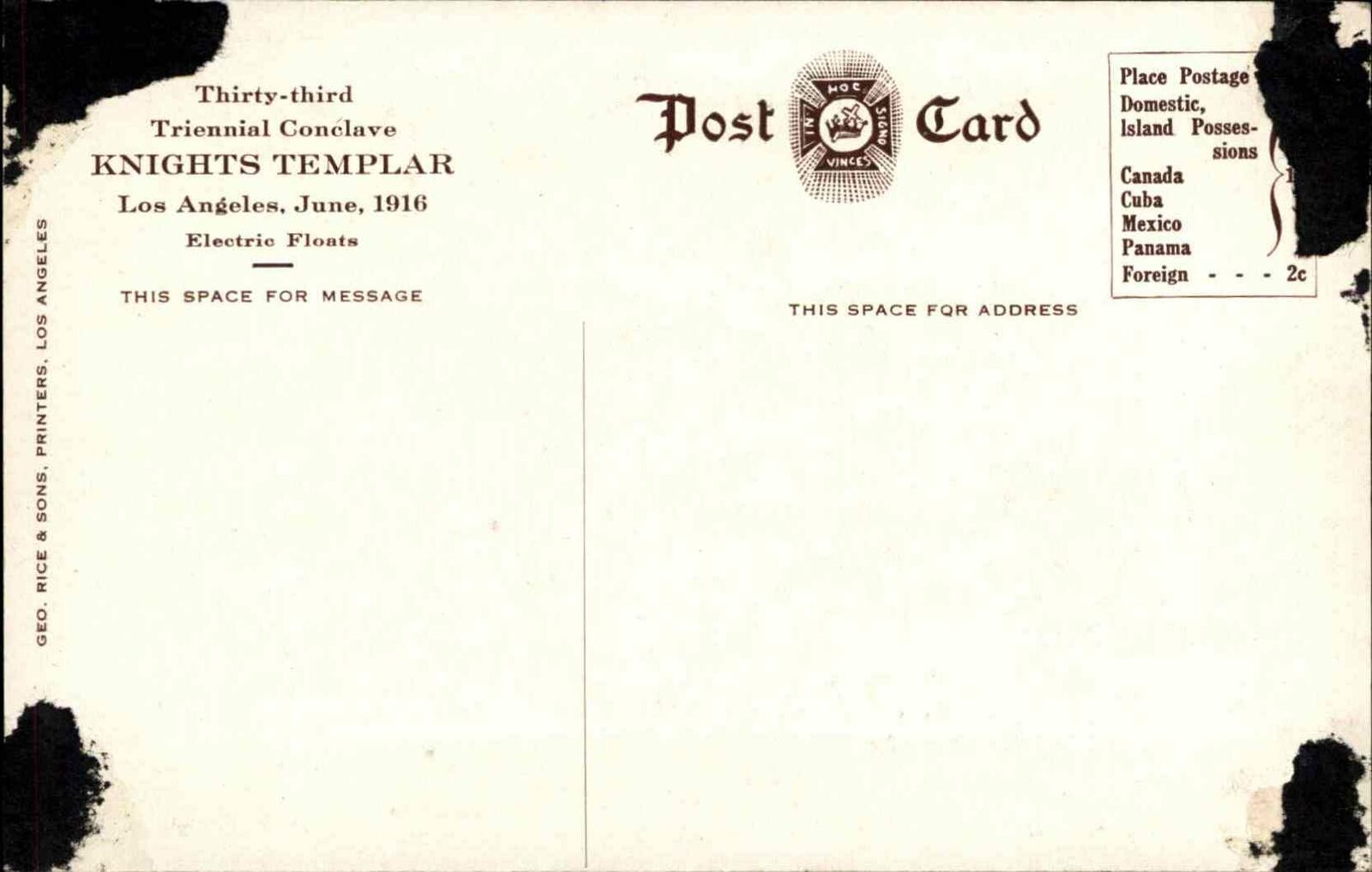 LOS ANGELES CA Knights Templar Parade Electric Twilight Float Old PC