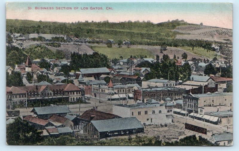 LOS GATOS, CA California ~ BUSINESS SECTION ~ Handcolored c1910 Scheff Postcard