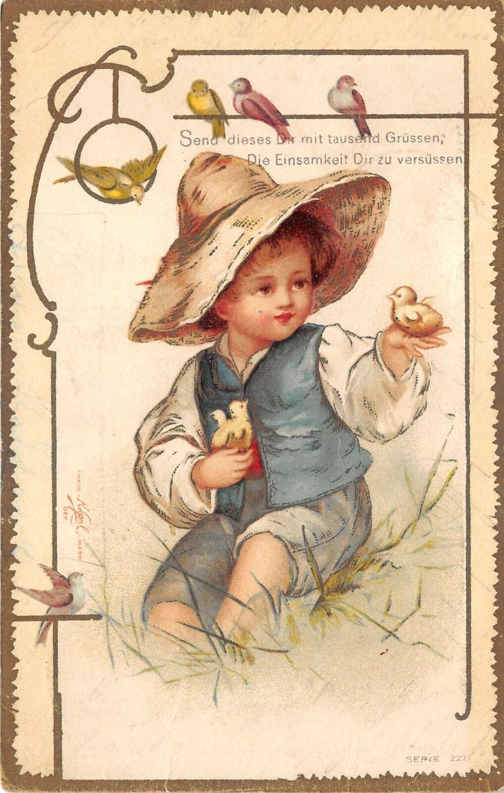 Lot170 greetings boy with little chicks postcard germany