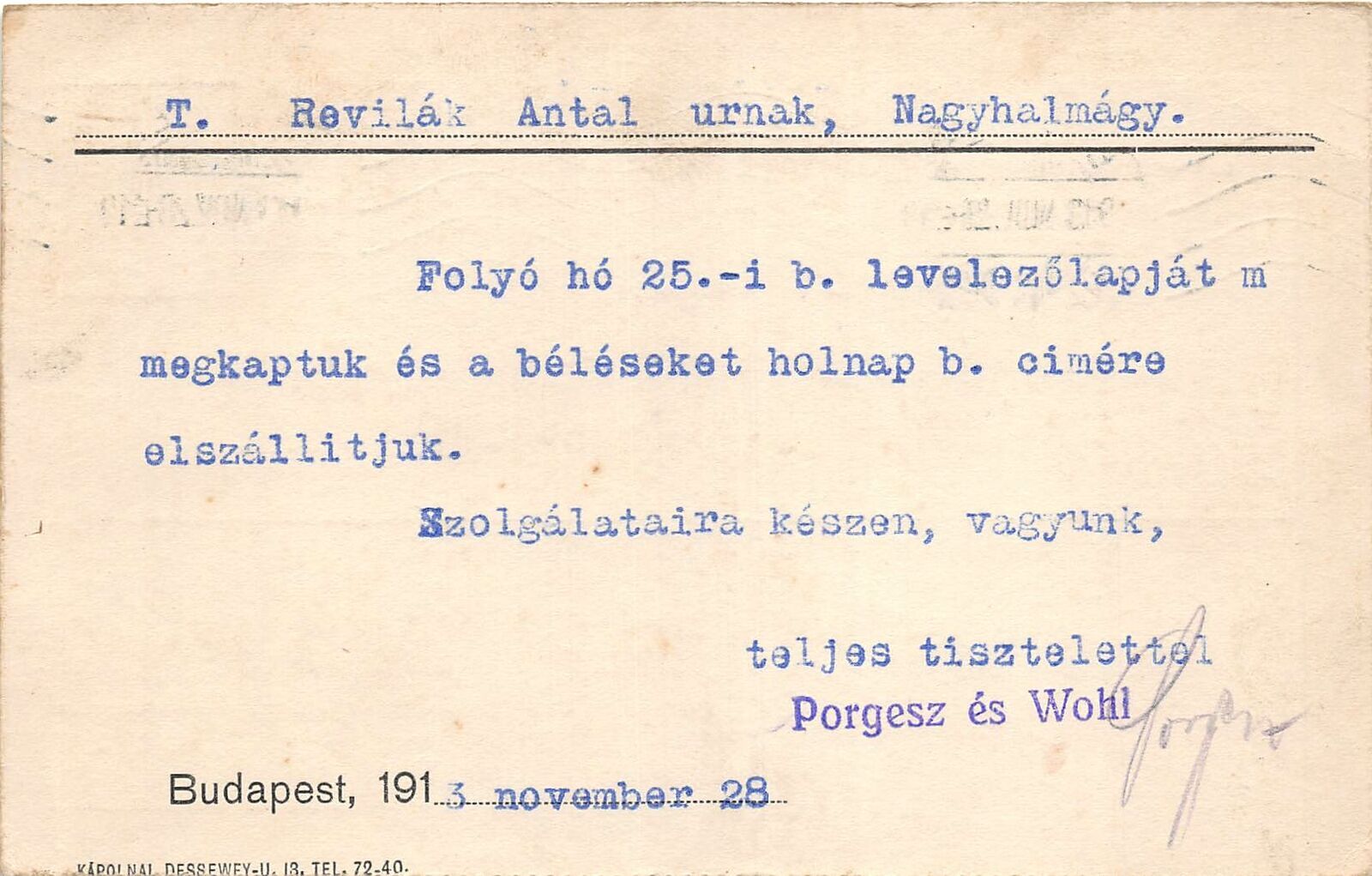 Lot272 budapest postcard hungary prgesz es wohl