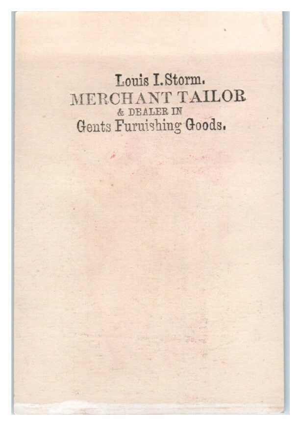 Louis I. Storm Merchant Tailor Victorian Trade Card