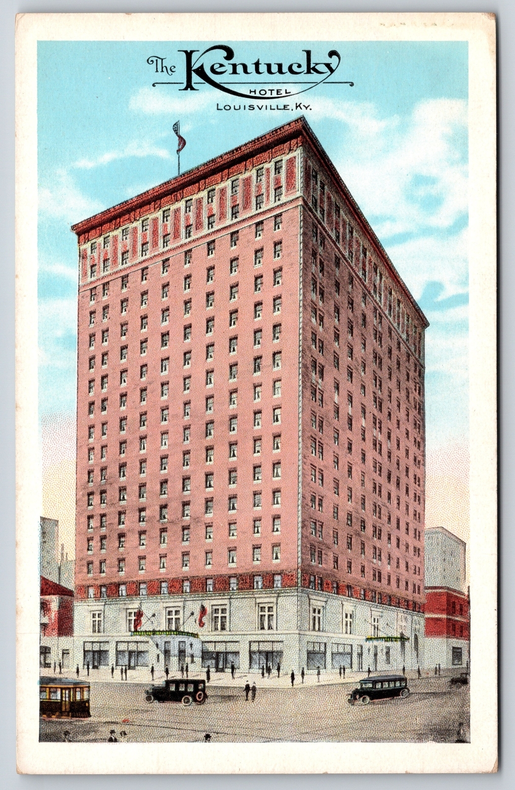 Louisville KY~The Kentucky Hotel Street View~Automobiles~EC Kropp~Vintage PC