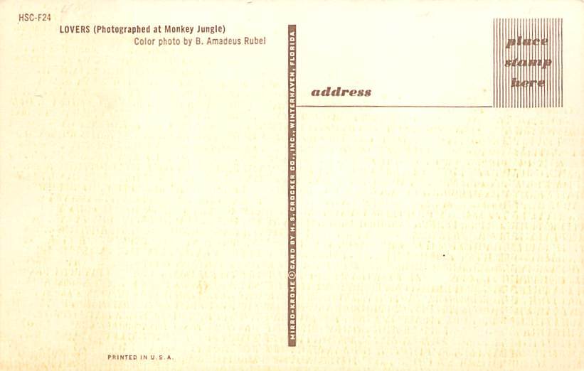 Lovers-Kissing Monkeys Miami FL Postcard Postal Date: Unused Grade: 1 Size: Regular Size Postcard - approximately 3 1/2 inch x 5 1/2 inch (9 CM x 14 CM) Grading Scale: Grade 1 = Perfect corners Grade 2 = Very ... Read More
