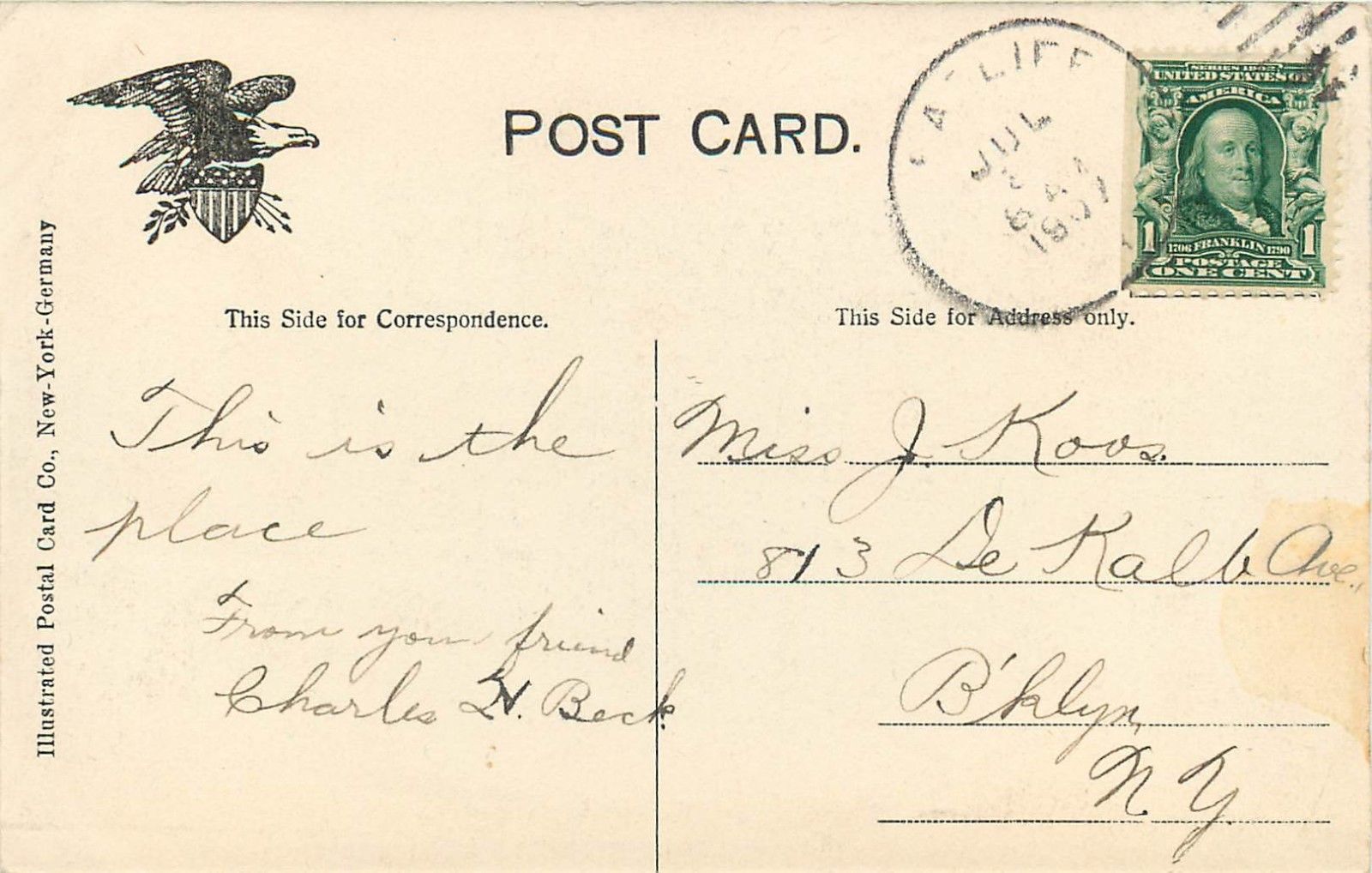 Lover's Lane, Sea Cliff, NJ Divided Back Postcard