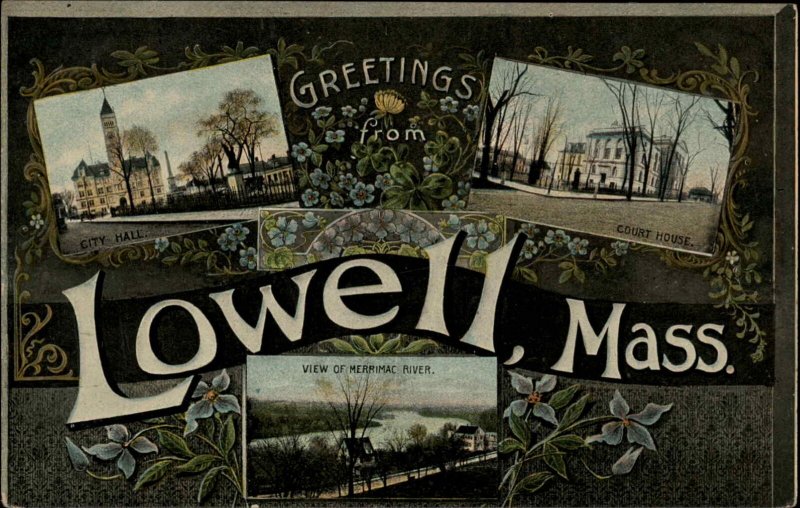 LOWELL MA Multi-View Greetings Landmarks c1910 Postcard