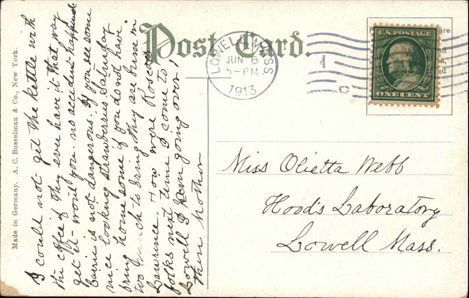 Lowell Massachusetts MA Central Block c1910 Vintage Postcard