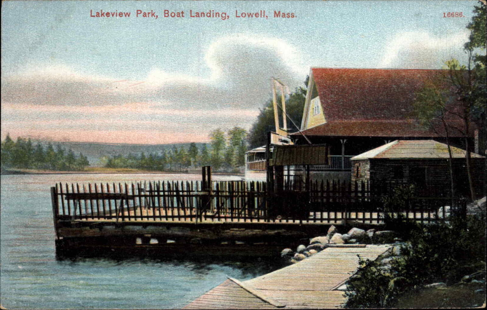 Lowell Massachusetts MA Lakeview Park Boat Landing c1910 Vintage Postcard