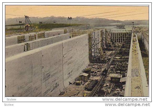 Lower Gatun Lock, Panama, 1900-1910s :: Antique (Vintage) Original Postcard, Standard Size (3.5 by 5.5), Litho, EX.
