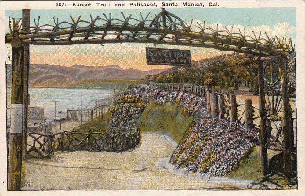 LP08 Santa Monica, California, CA, postcard, Sunset Trail &