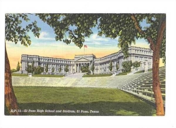 LP15 El Paso, Texas, postcard, High School and Stadium.