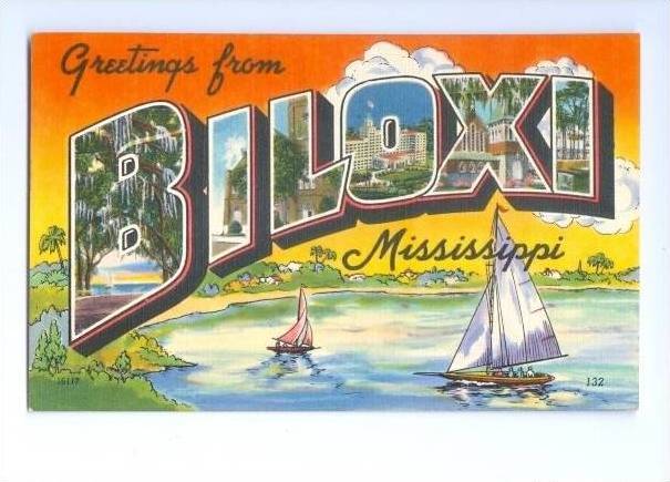 LP16 LARGE letter Biloxi, Mississippi, MS, Postcard.