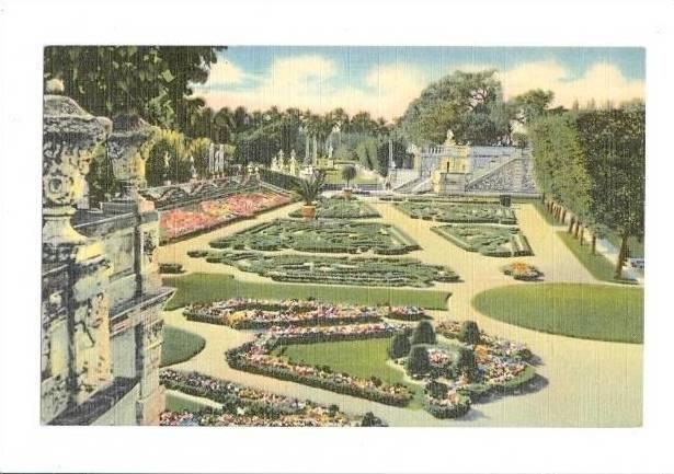 LP33 Florida, FL, Postcard, Garden, Villa Viscaya.
