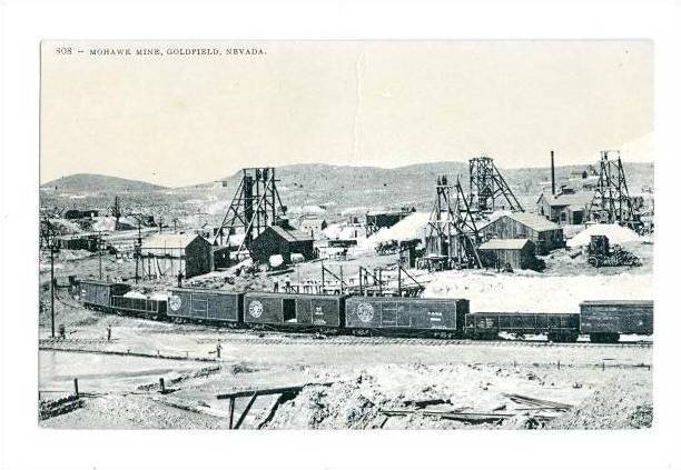 LP39 Goldfield, Nevada, NV, postcard, Mohawk Mine, Train,