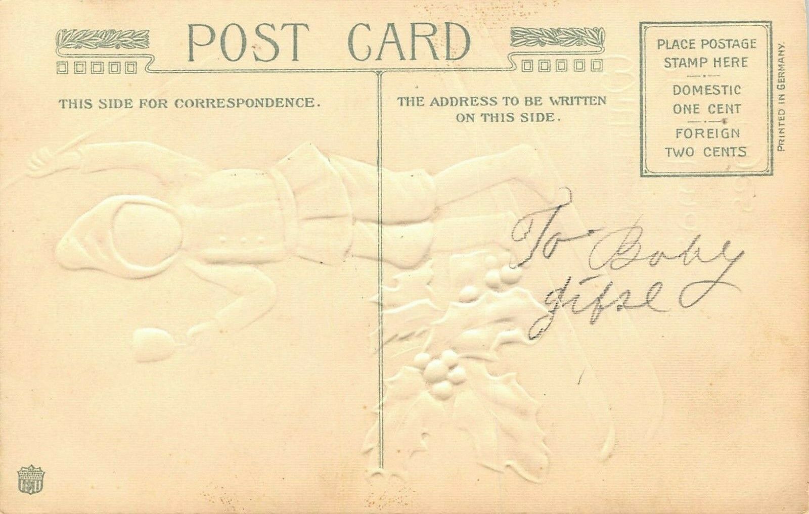 LP40 Christmas Postcard Boy Skiing Glass Wine