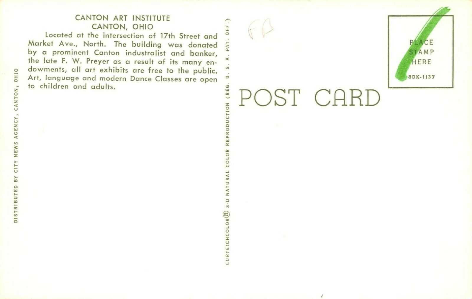 LP41 Canton Ohio Art Institute Postcard