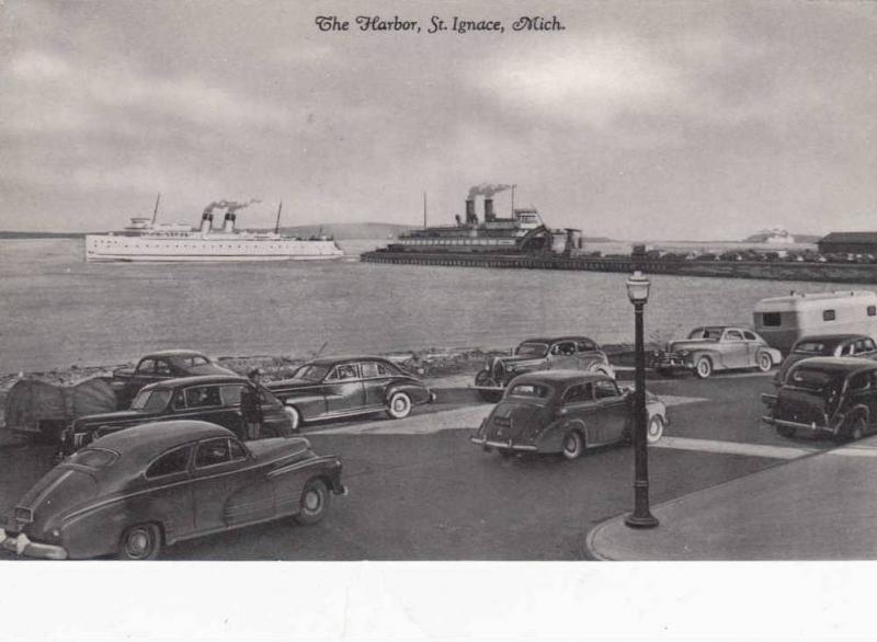 LP42 St. Ignace, Michigan, MI, postcard, The Harbor, Old
