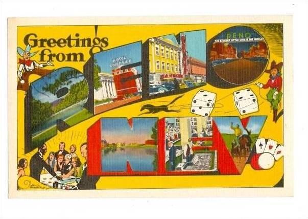 LP52 Large Letter, letters, postcard, Reno, Nevada,