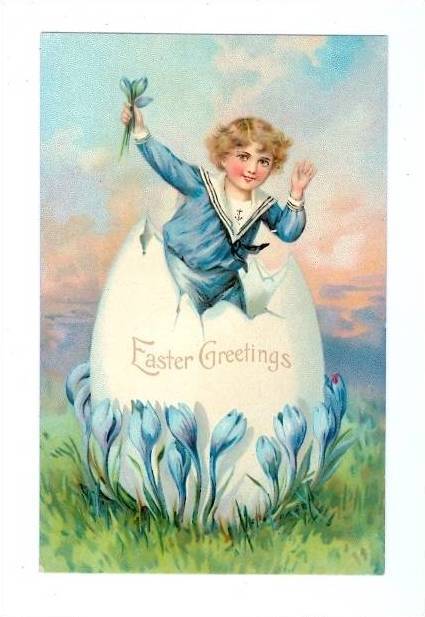 LP54 Easter Greetings , vintage postcard, fantasy egg,