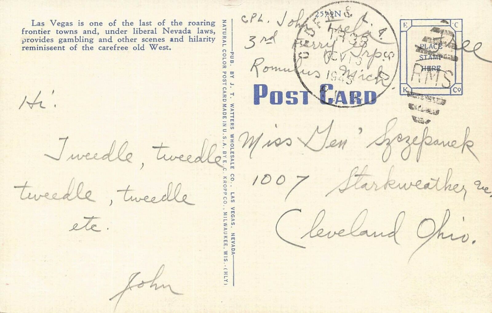 LP57 Las Vegas Nevada Postcard Gambling Tango Game