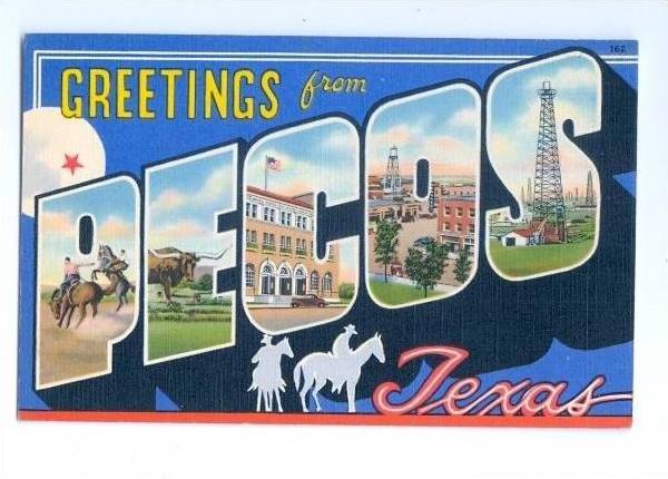 LP60 LARGE letter, Pecos, Texas, Postcard.