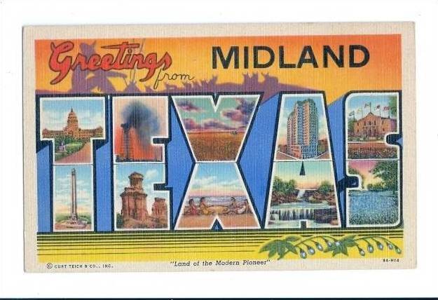 LP61 LARGE letter, Midland, Texas, TX, Postcard.