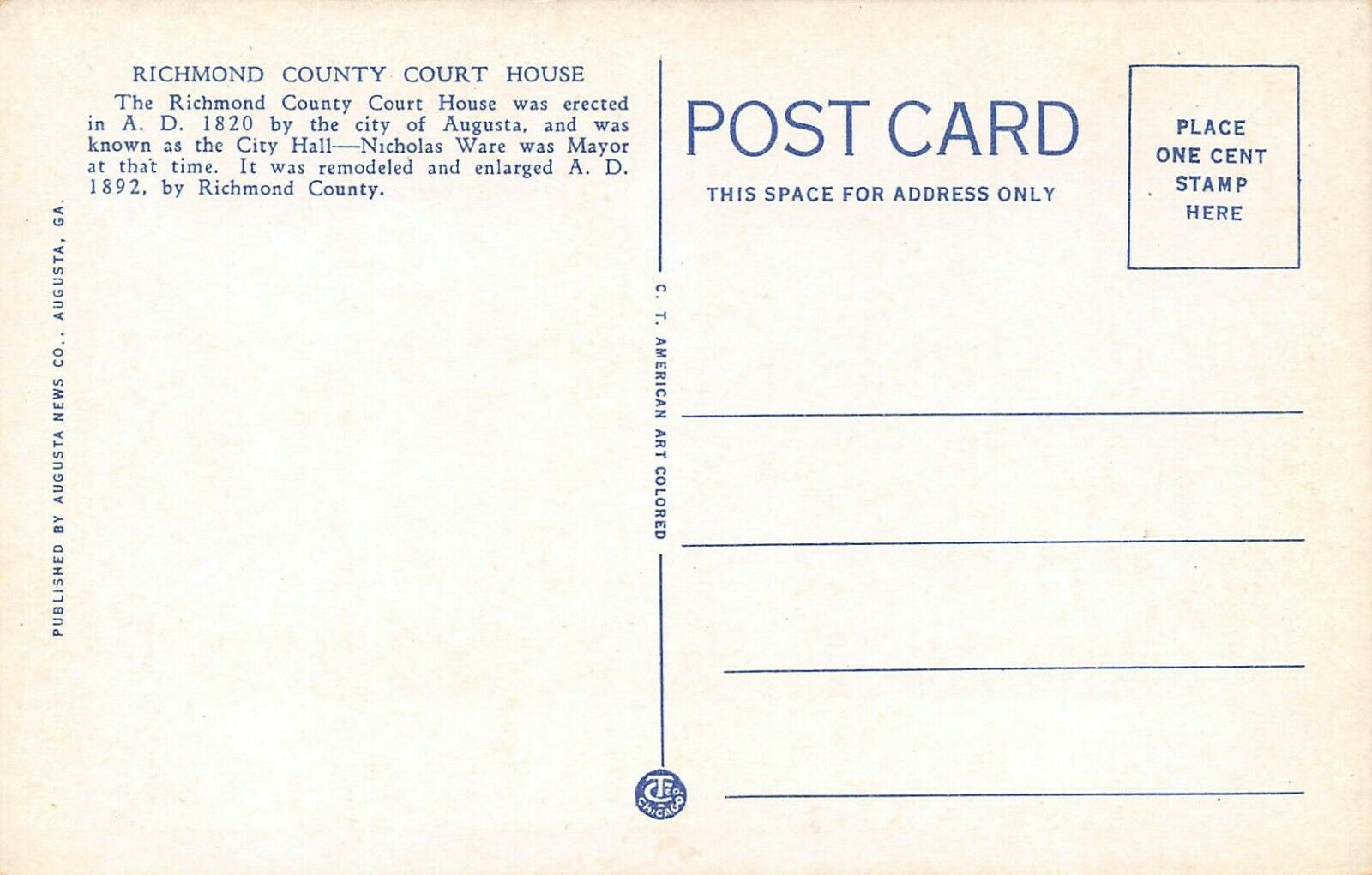LP62 Augusta Georgia Postcard Court House