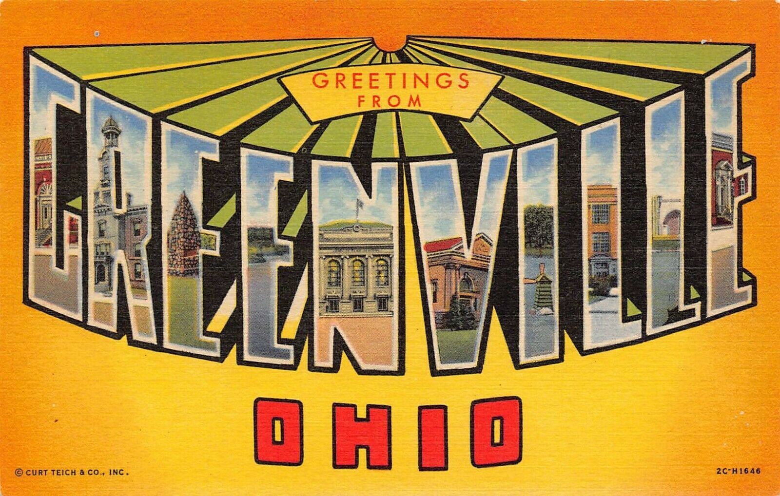 LP67 GREENVILLE Ohio Postcard Large Letters