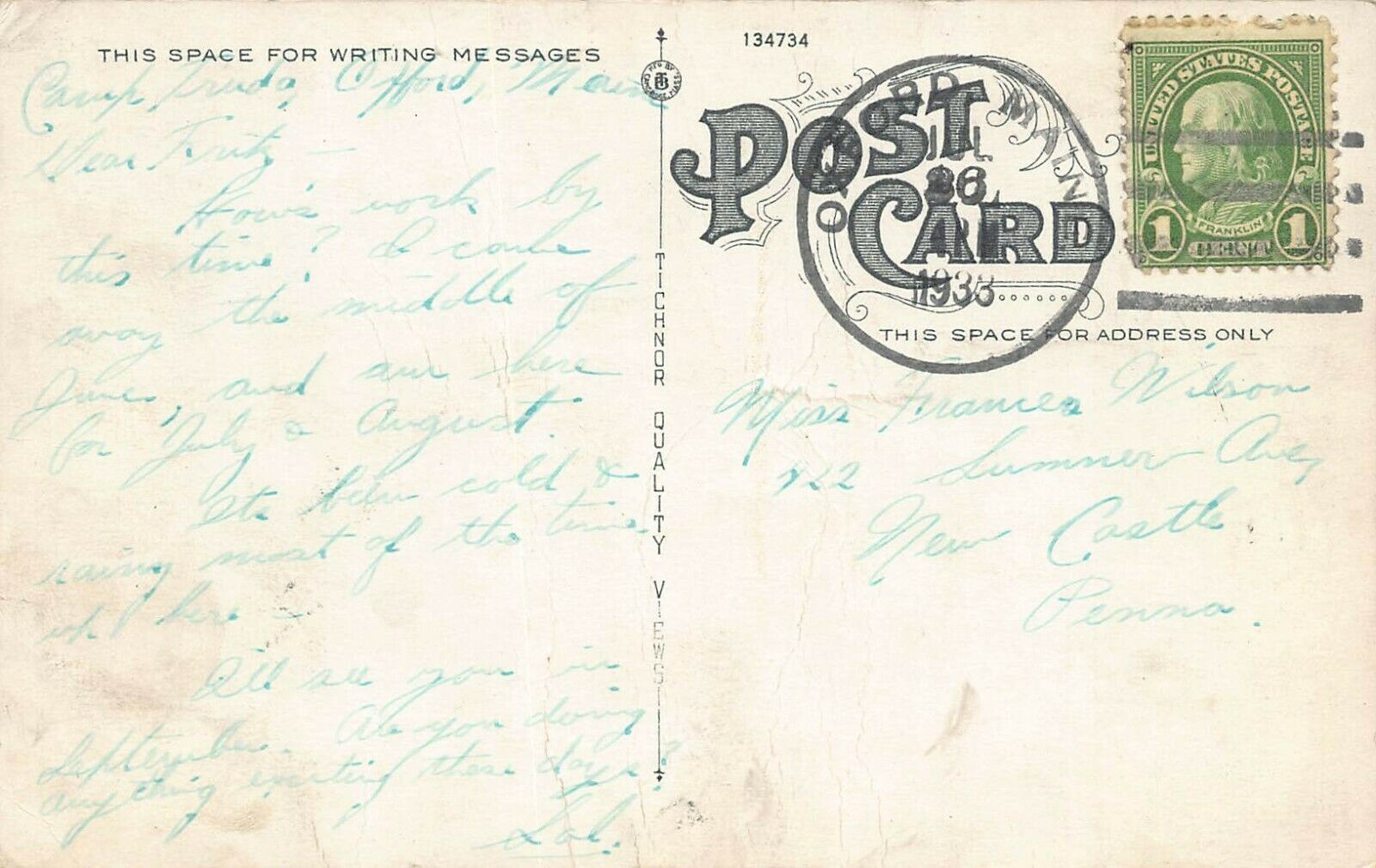 Condition:We are showing high quality scans of the front and back of each postcard. Please examine them carefully and email us with any questions.Vintage Postcard
